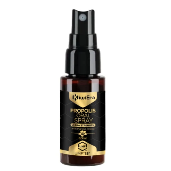 KiwlEra Propolis Oral Spray is a special blend of New Zealand-sourced propolis, Manuka Honey UMF 15+, and essential oils formulated for oral health.